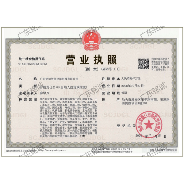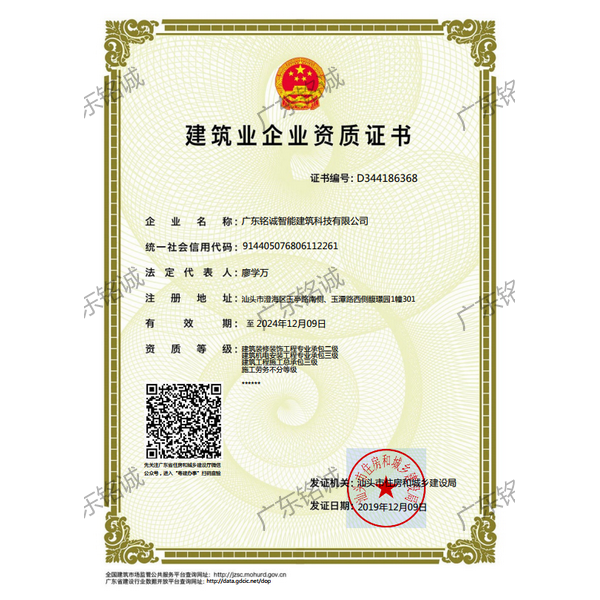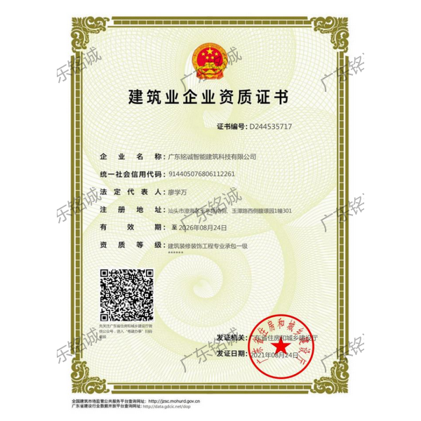 廣東銘誠智能建筑科技有限公司成立于2008年,公司注冊資金為6000萬元,集辦公裝修、酒店裝修、家庭裝修、軟裝裝飾、娛樂場所裝修為一體的裝飾公司,率先提出“創(chuàng)造現(xiàn)代人文空間,挑戰(zhàn)業(yè)界高峰”的雄壯口號,并以此為目標(biāo),完成了一大批具有影響力的大型公裝工程:其中包括廣州國際中醫(yī)藥展貿(mào)中心、奧飛澄海音樂廳、澄海區(qū)國家稅務(wù)局、澄海興信小額貸款、澄海潮商村鎮(zhèn)銀行、汕頭龍湖賓館、澄海豪庭大酒店、御園國際飲食城、澄海福晉軒酒家、享樂匯保健有限公司、假日商務(wù)酒店、尚景康園物業(yè)、星輝車模股份有限公司、奧飛動漫有限公司、香港國際玩具、汕頭萬基貿(mào)易有限公司、泰興源實業(yè)有限公司、汕頭皇冠玩具有限公司等;家裝工程包括南澳黃金海岸整幢的精裝房、中信華府、富春華庭、金信鳳凰名城、凱旋花園、中信金城、柏嘉半島、陽光海岸、金葉島等高等住宅。 ? 廣東銘誠智能建筑科技有限公司經(jīng)過十余年的建筑裝飾裝修施工領(lǐng)域項目積淀,于2018年2月取得“建筑裝修裝飾工程專業(yè)承包二級”、“建筑機電安裝工程專業(yè)承包三級”、“建筑工程施工總承包三級”、“施工勞務(wù)不分等級”、“安全生產(chǎn)許可證”等專業(yè)資質(zhì),并于2021年8月建筑裝修資質(zhì)正式升級為“建筑裝修裝飾工程專業(yè)承包一級”。這是對企業(yè)規(guī)模、工程業(yè)績、管理水平、誠信表現(xiàn)的肯定,是企業(yè)實力與能力的展現(xiàn)。 ? 公司每一項工程都始終堅持“精美設(shè)計、精心施工、確保合同承諾;勤奮開拓、追求突出、創(chuàng)造時代精品”的質(zhì)量方針,力爭做一項工程,樹一座豐碑。 ? ?銘誠擁有一支由專業(yè)的營銷精英和客戶顧問組成的營銷隊伍,勤奮、敬業(yè)的每一位銘誠員工將本著“贏在別人休息時”的專業(yè)精神,為客戶提供全程營銷及售后服務(wù),確保客戶的合法利益,提供體貼周到的服務(wù),做到讓顧客滿意。 ? 銘誠擁有一批資老牌室內(nèi)環(huán)境設(shè)計師,以“現(xiàn)代人文空間”為設(shè)計理念,為客戶提供人性化、差異化、智能化的室內(nèi)環(huán)境設(shè)計服務(wù),準確的將人性化特點與室內(nèi)環(huán)境相融合,達到了“現(xiàn)代人文空間”的和諧統(tǒng)一。 ? ? ? ?自主創(chuàng)新、視社會責(zé)任為己任的精神使我們在發(fā)展的道路上屢獲殊榮:不斷提升的銘誠品牌知名度和美譽度,靠的是優(yōu)質(zhì)的產(chǎn)品,靠的是不斷提升的營業(yè)績,靠的是國內(nèi)的核心技術(shù)和誠信的服務(wù)。相信通過銘誠人的努力,銘誠將會不斷以新的姿態(tài)為提升廣大消費者的生活質(zhì)量做好服務(wù),為中國裝飾行業(yè)設(shè)計創(chuàng)新做出突出貢獻。 ? ? “忘掉競爭、共